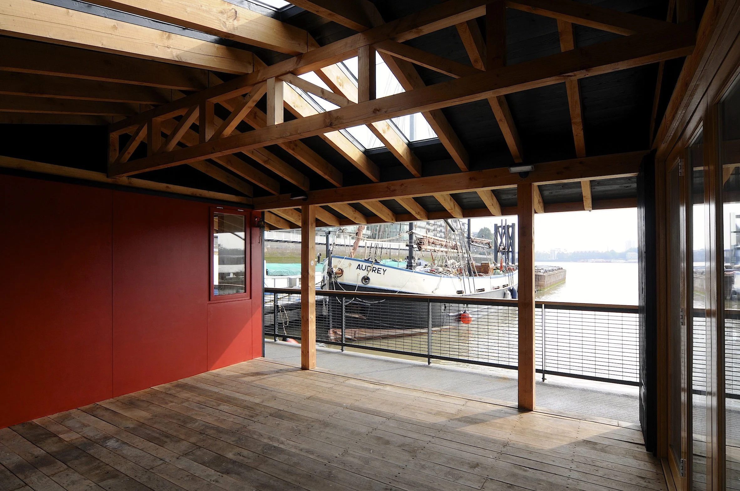 The concept of the shared Pierhouse was central to the moorings, but due to the high cost of the pontoon infrastructure, only a small budget remained for its construction.